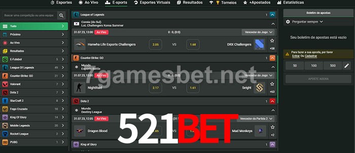 A aposta 521BET oferece aos jogadores a experiência mais conveniente de apostas em eSports!